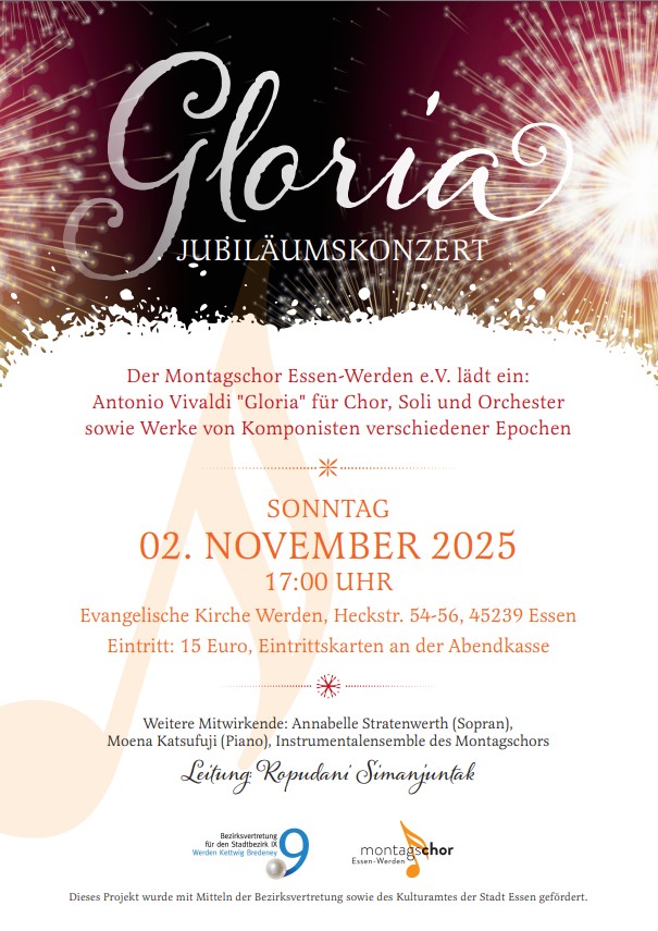 Der gemeinnützige Verein Montagschor Essen-Werden e.V. wurde 2023 gegründet. Ziel des Vereins ist die Förderung von Kunst und Kultur, insbesondere die Pflege und Verbreitung des Chorgesangs. Der Verein besteht aus aktiven und fördernden Mitgliedern. Er finanziert sich aus Mitgliedsbeiträgen und aus Spenden. Mehr Informationen zu unserem Verein und Möglichkeiten, wie Du unseren Verein unterstützen kannst, findest Du hier >>